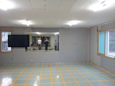이보드 고정 후 우레탄 폼작업